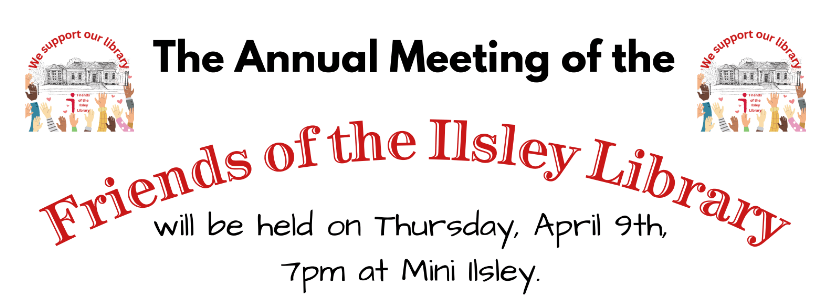 Our annual budget is close to $20,000, but the book sales raise only one quarter of that amount. We welcome your support, either through membership, a donation and/or as a volunteer. An annual contribution of $5 or more automatically enrolls you as a member of the Friends. Access to the online (or USPS) newsletter is available to those who fill out a membership form and return it to Ilsley Public Library. Click on the ‘Renew’ link in the sidebar to access this form.